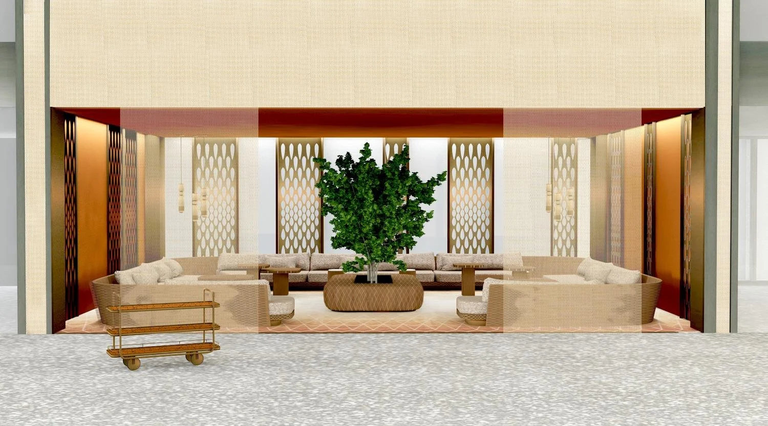 ExecuJet is a leading global aviation organization offering diverse services from aircraft management to fixed base operations. For their most recent lounge situated in Al Maktoum Airport, the client requested the introduction of Middle Eastern warmth and hospitality to the contemporary facility. We created a signature aesthetic for the VIP Majlis lounge, the bar area and private suites.