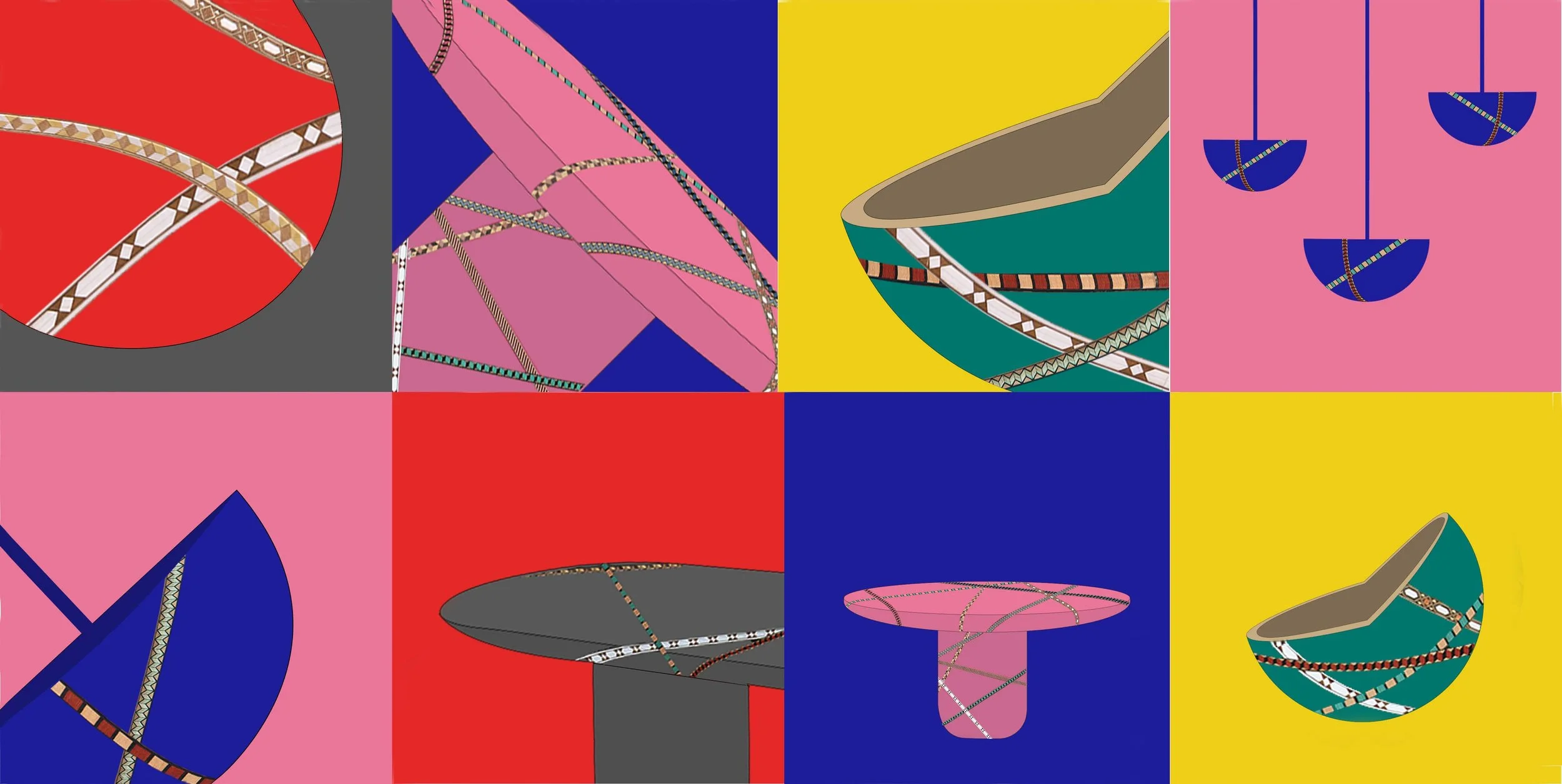 Exploring the craft of wood marquetry, this collection adds bold colors and voluptuous forms to a delicate technique. Marquetry Mania challenges in both aesthetic and technique as the strips are applied on curved surfaces for the first time and contrasted with vibrant colors. The result is a contemporary collection of tables and accessories that breathe a new life to the traditional craft technique.
